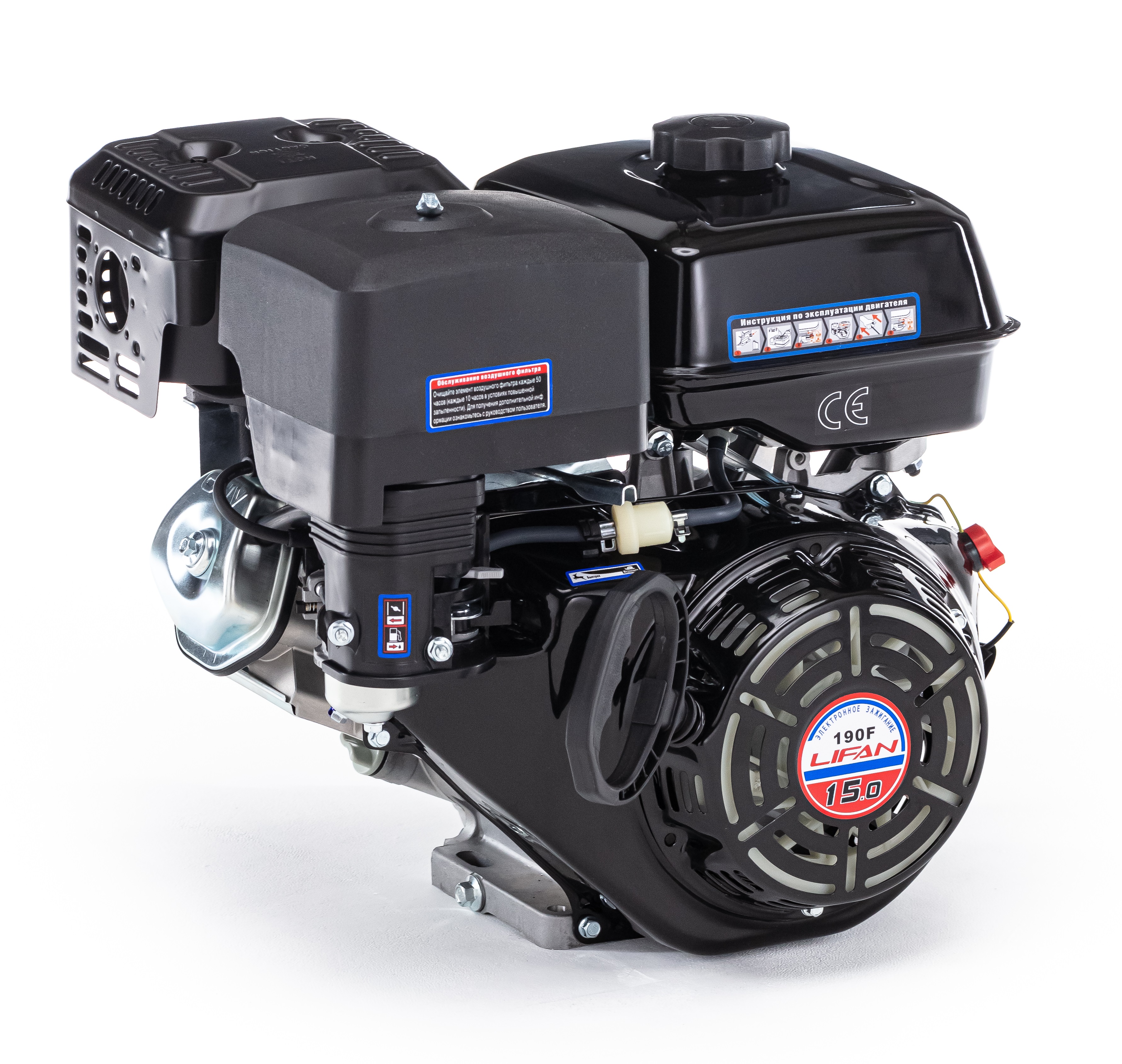 Бензиновый двигатель Lifan 190F (15 л.с., вал 25 мм) катушка 7 А 12В