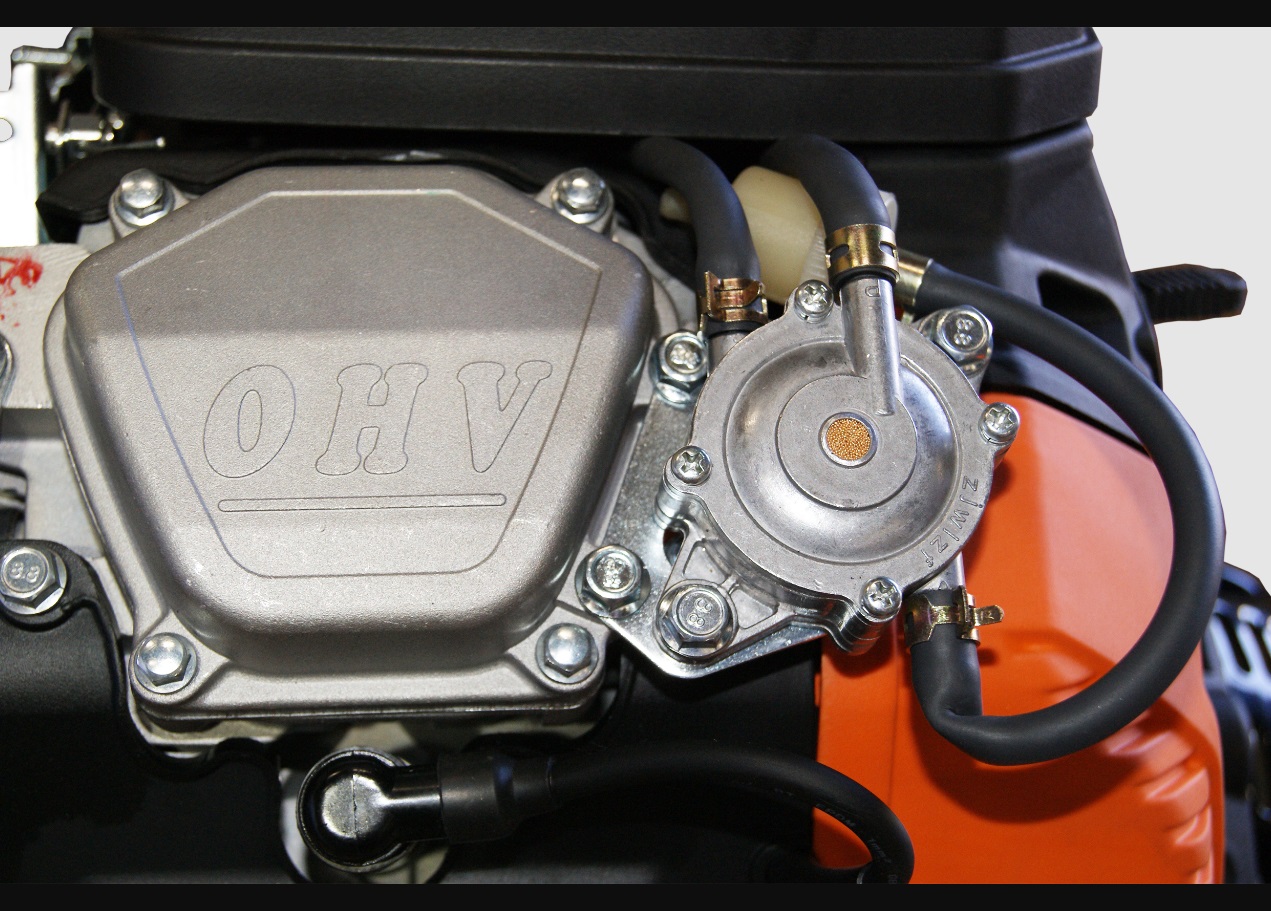 Работает на бензине, что расширяет возможность использования в различных погодных условиях. Датчик уровня масла не позволит работать двигателю с минимальным уровнем. Замену масла рекомендуется производить после первых 20 часов работы и последующие каждые 100 часов или 1 раз в 6 месяцев. При использовании двигателя в экстремальных условиях замену следует производить каждые 25 часов.