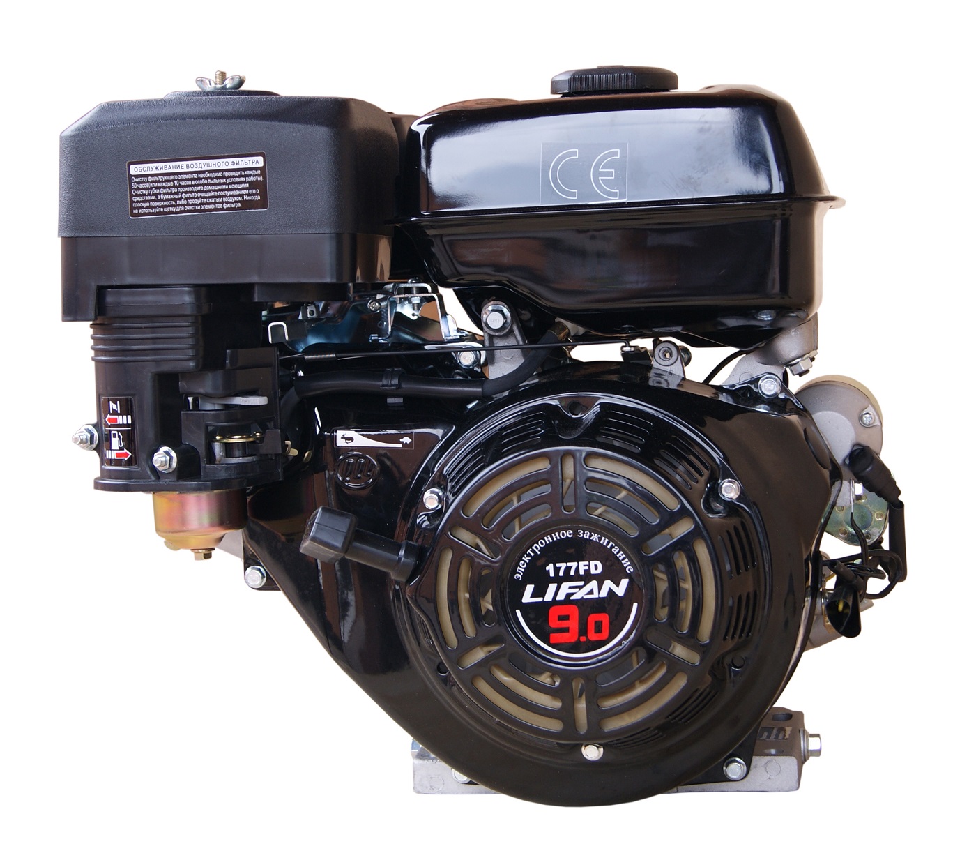 Lifan 177FD (3A) 9 л.с. с электрозапуском и катушкой - это профессиональный лифановский бензиновй двигатель на 9 лошадиных сил, который обладает улучшенным моторесурсом и способен эффективно работать на разного вида техники профессионального и промышленного класса.