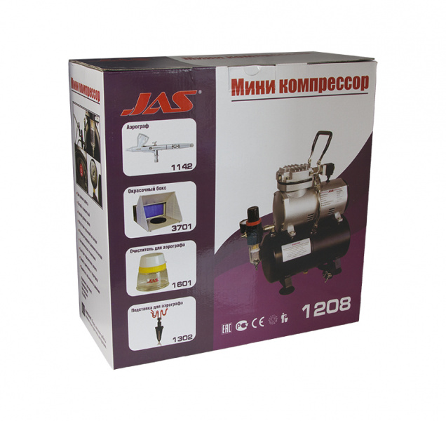 Компрессор JAS 1208 для аэрографа в комплекте со шлангом 1,8 м., 2 режима, c ресивером