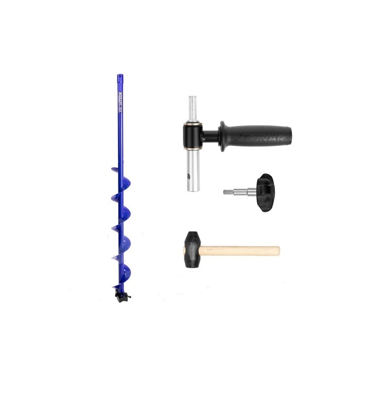 Комплект под шуруповерт состоит из шнека ELECTROSHTORM 150R с правым вращением, адаптера и прорезиненного молоточка и предназначен для комфортного бурения льда с помощью шуруповерта. Выверенный угол атаки делает бурение быстрым.