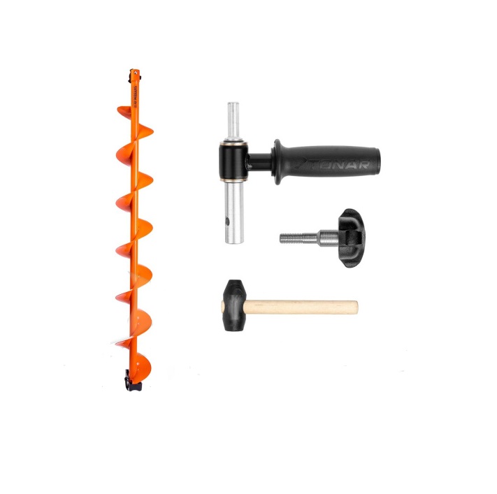 Комплект под шуроповерт состоит из шнека MOTOSHTORM 130R с правым вращением, адаптера АШ-02 и прорезиненного молоточка.
