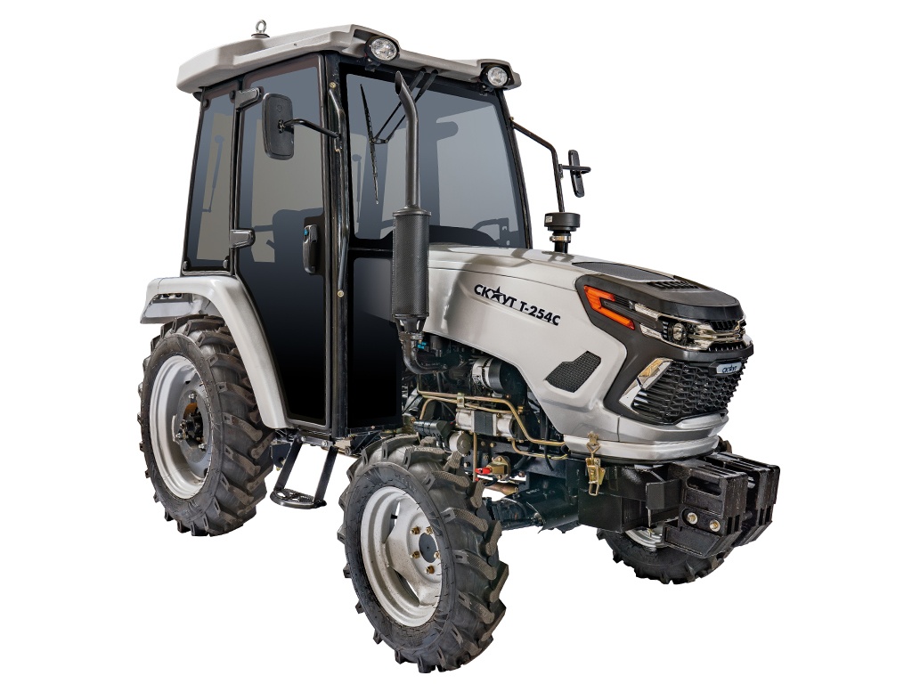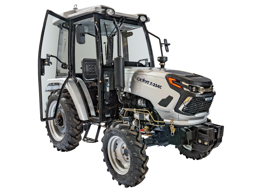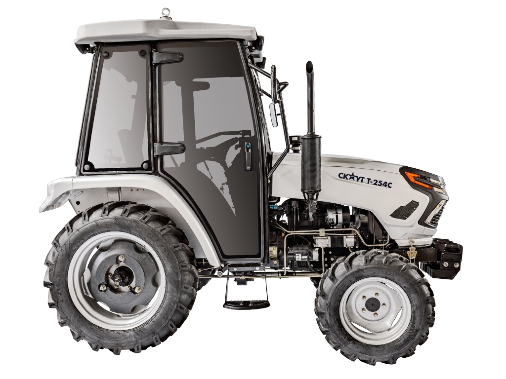 Трактор СКАУТ T-254С с кабиной – это компактный трактор для круглогодичной сельскохозяйственной и коммунальной работы на ферме, приусадебном участке или ТСЖ.