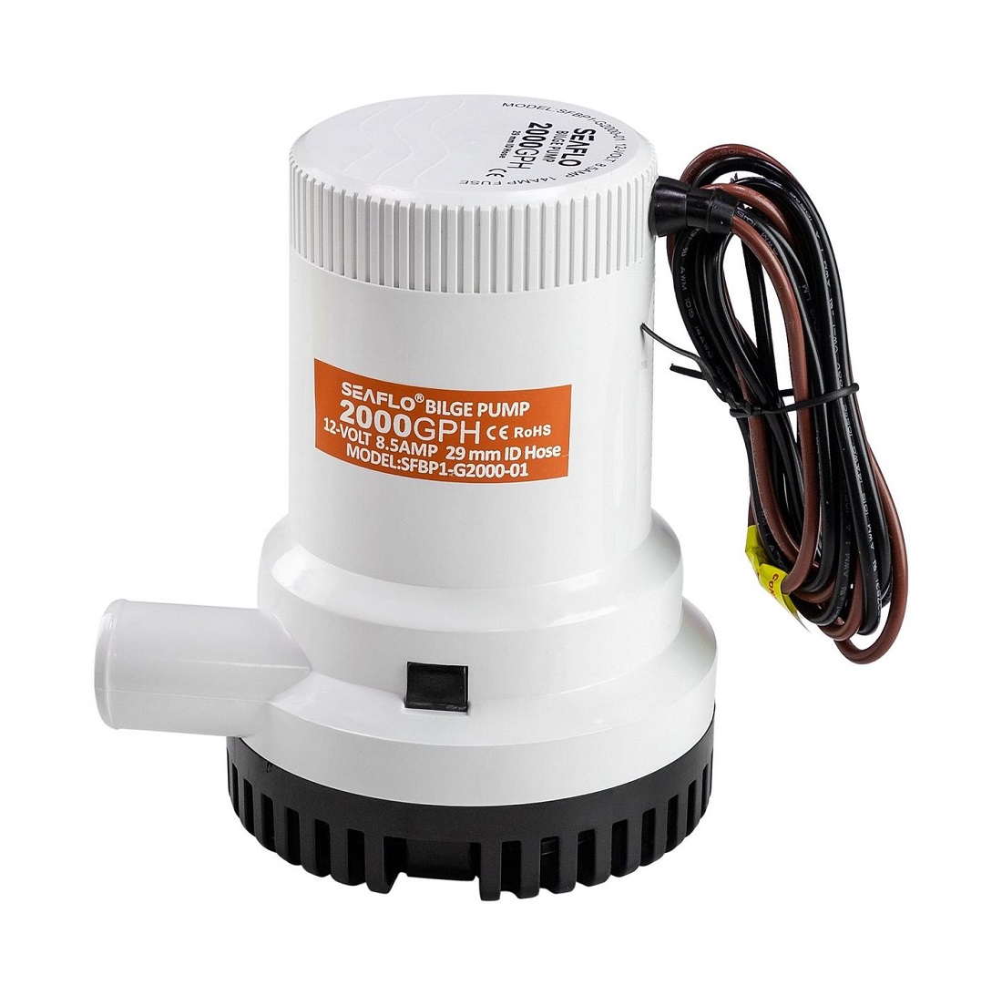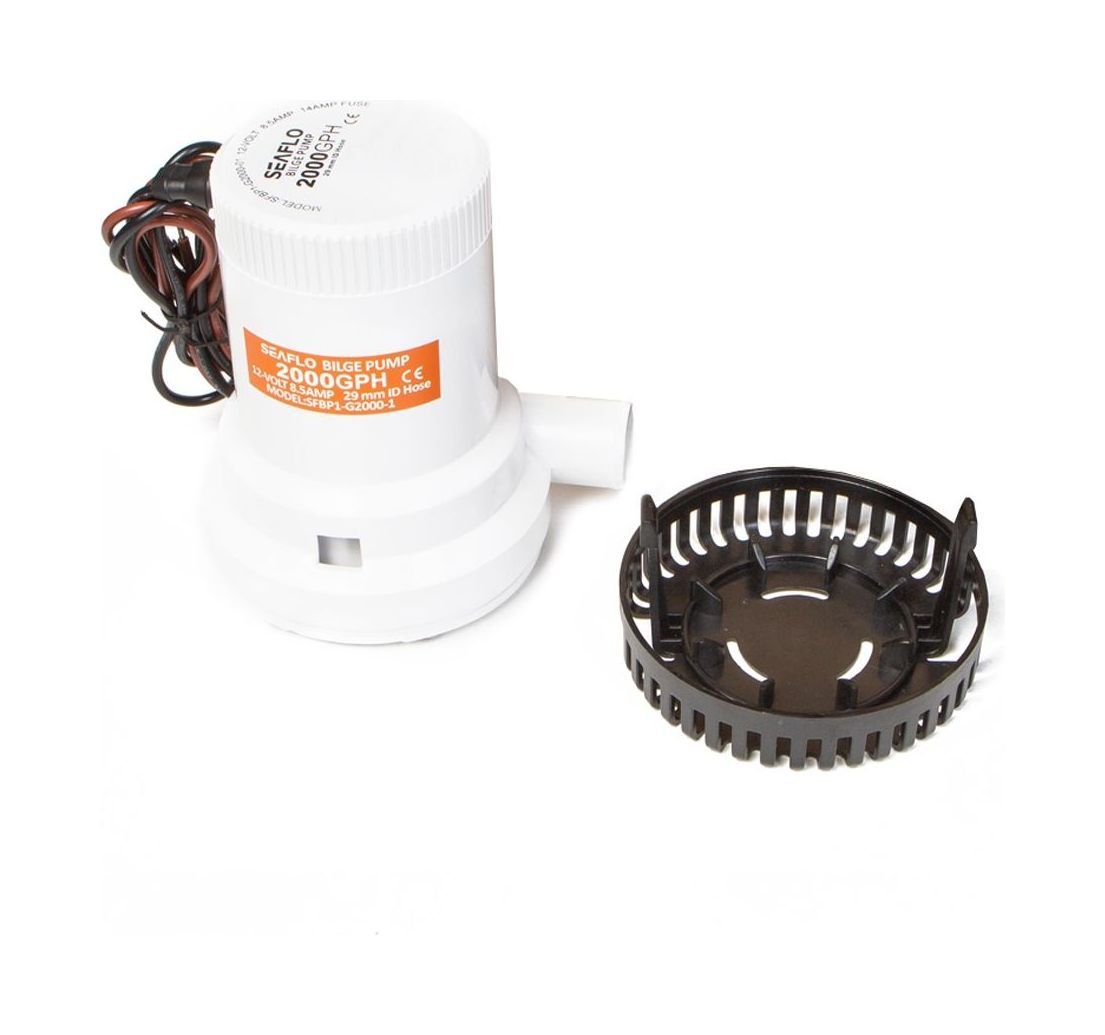 Помпа осушительная SEAFLO мощностью 2000 галлонов в час (126 л/мин) не имеет встроенных автоматических датчиков, активируется с помощью панели управления или поплавковым выключателем. Насос оснащен защитой от воздушных пробок. Электрический насос надежно изолирован с помощью кольцевого уплотнителя от попадания воды. Помпа укомплектована проводкой морского класса, которая герметично изолирована манжетами и герметиком. Увеличенная конструкция крыльчатки и более надежный двигатель позволяет увеличить КПД помпы и обеспечить бесперебойную работу.