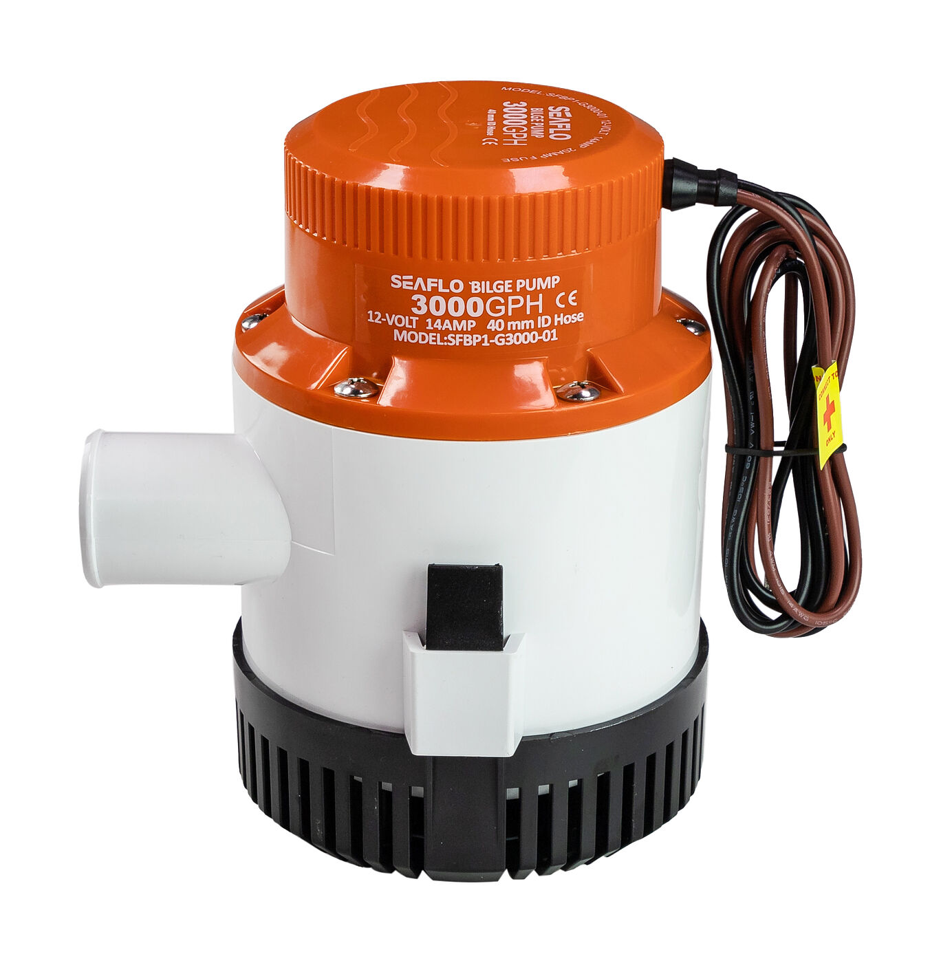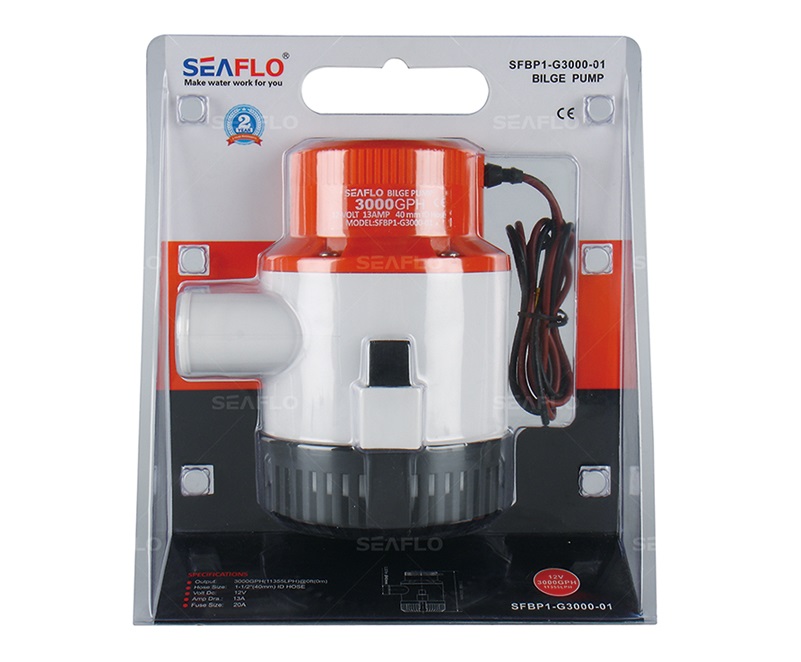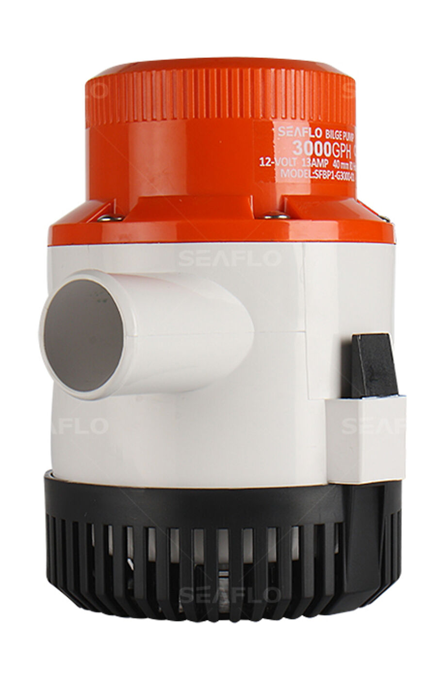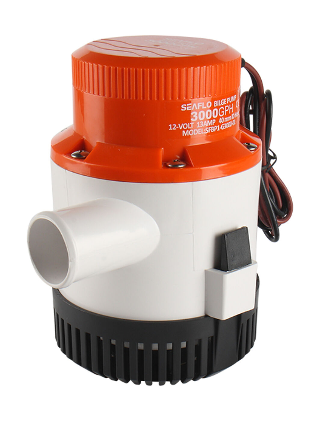 Помпа осушительная SEAFLO мощностью 3000 галлонов в час (189 л/мин) не имеет встроенных автоматических датчиков, активируется с помощью панели управления или поплавковым выключателем. Насос оснащен защитой от воздушных пробок. Электрический насос надежно изолирован с помощью кольцевого уплотнителя от попадания воды. Помпа укомплектована проводкой морского класса, которая герметично изолирована манжетами и герметиком. Увеличенная конструкция крыльчатки и более надежный двигатель позволяет увеличить КПД помпы и обеспечить бесперебойную работу.