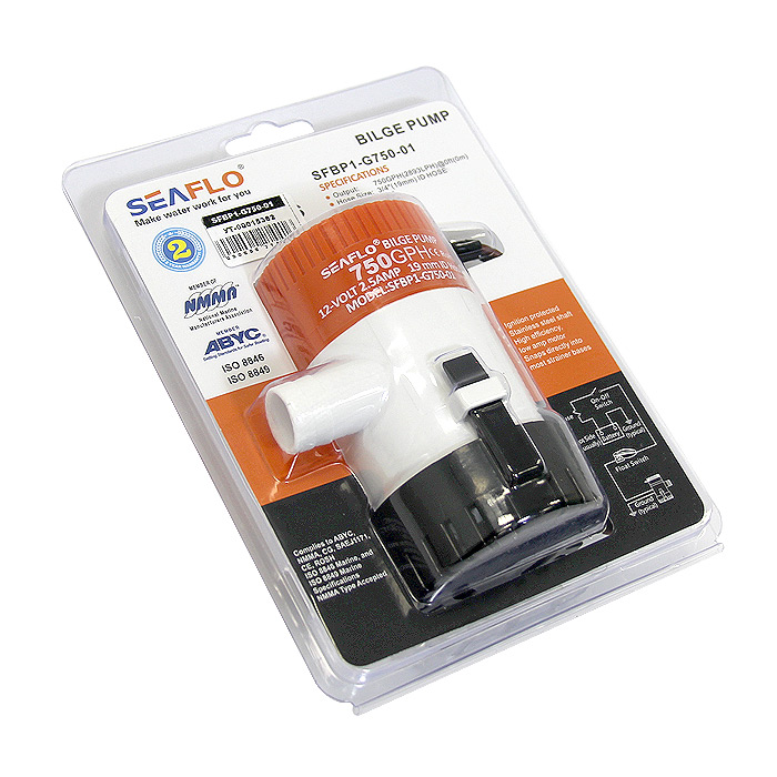 Помпа осушительная SEAFLO мощностью 750 галлонов в час (47 л/мин) не имеет встроенных автоматических датчиков, активируется с помощью панели управления или поплавковым выключателем. Насос оснащен защитой от воздушных пробок и влагонепроницаемыми уплотнителями. Помпа укомплектована проводкой морского класса. Увеличенная конструкция крыльчатки и более надежный двигатель позволяет увеличить КПД помпы и обеспечить бесперебойную работу.