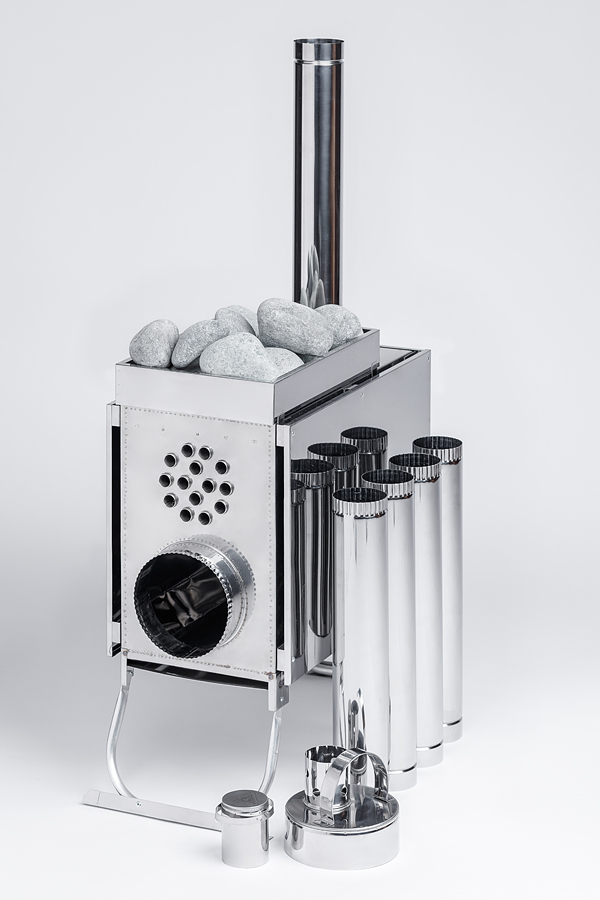В комплекте поставляется съемный короб для закладки камней, что позволяет использовать печь в походной бане.