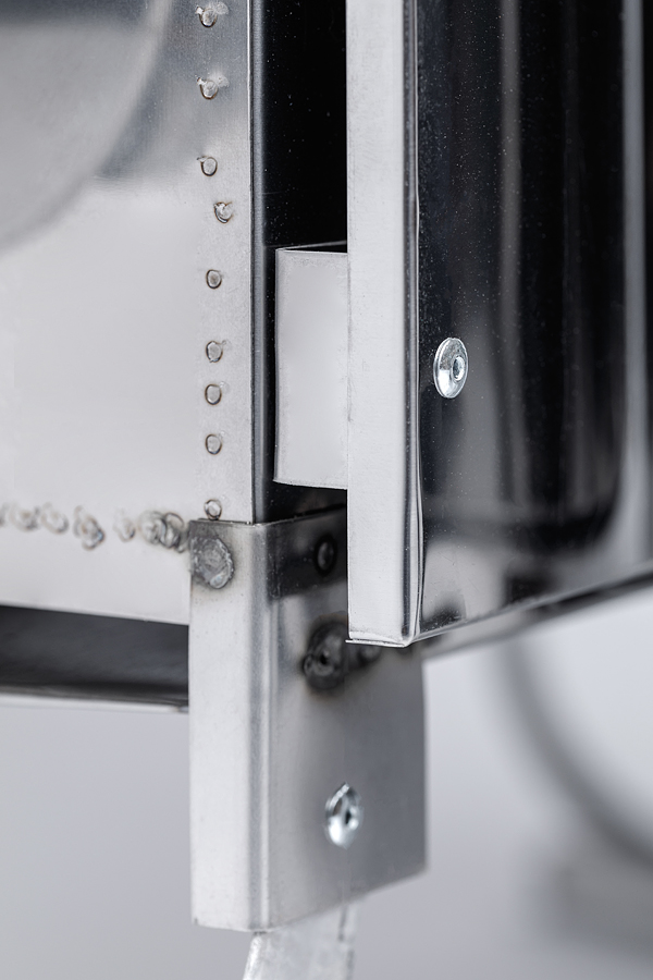 В нижней части внутри печи «ИНВЕНТ» по углам, вмонтированы пластины под углом 45 градусов, это способствует улучшению интенсивности и в тоже время длительности горения, так как дрова (угли) при сгорании постепенно смещаются к центру печи. Данная конструкция служит ребром жесткости, боковых стенок и дна, а так же препятствует сильному нагреву нижней части печи — что улучшает пожарную безопасность.