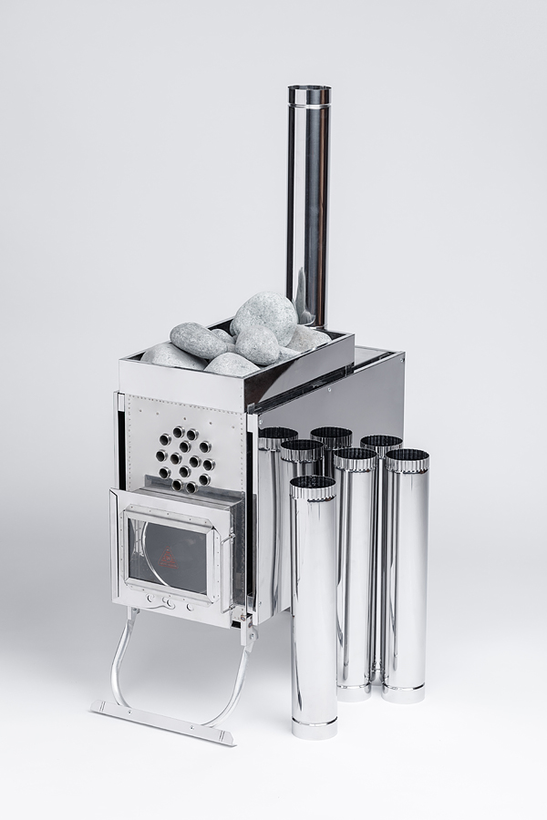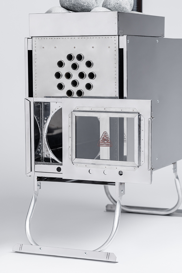 В комплекте поставляется съемный короб для закладки камней, что позволяет использовать печь в походной бане.