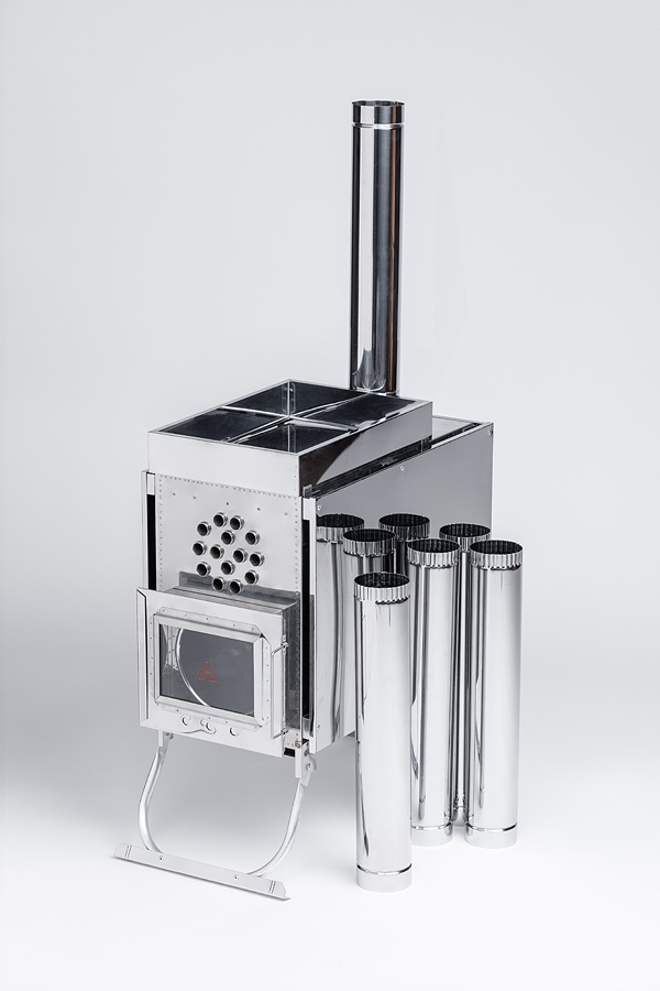 Печь-камин туристическая «ИНВЕНТ» со встроенным теплообменником с вентилятором предназначена для обогрева и приготовления пищи в походных условиях (на даче, на рыбалке, на охоте, в походе), а так же организации банных процедур.