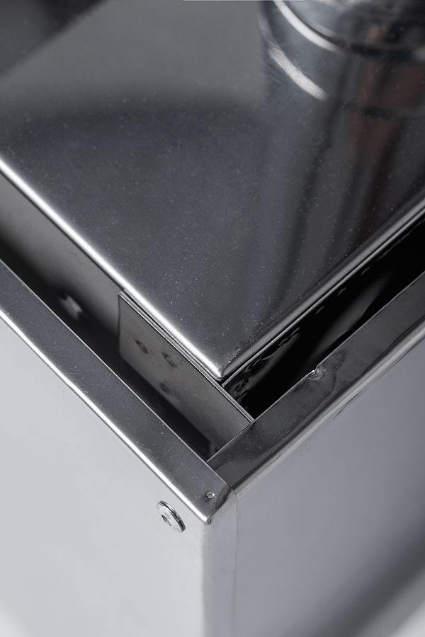 В нижней части внутри печи «ИНВЕНТ» по углам, вмонтированы пластины под углом 45 градусов, это способствует улучшению интенсивности и в тоже время длительности горения, так как дрова (угли) при сгорании постепенно смещаются к центру печи. Данная конструкция служит ребром жесткости, боковых стенок и дна, а так же препятствует сильному нагреву нижней части печи — что улучшает пожарную безопасность.