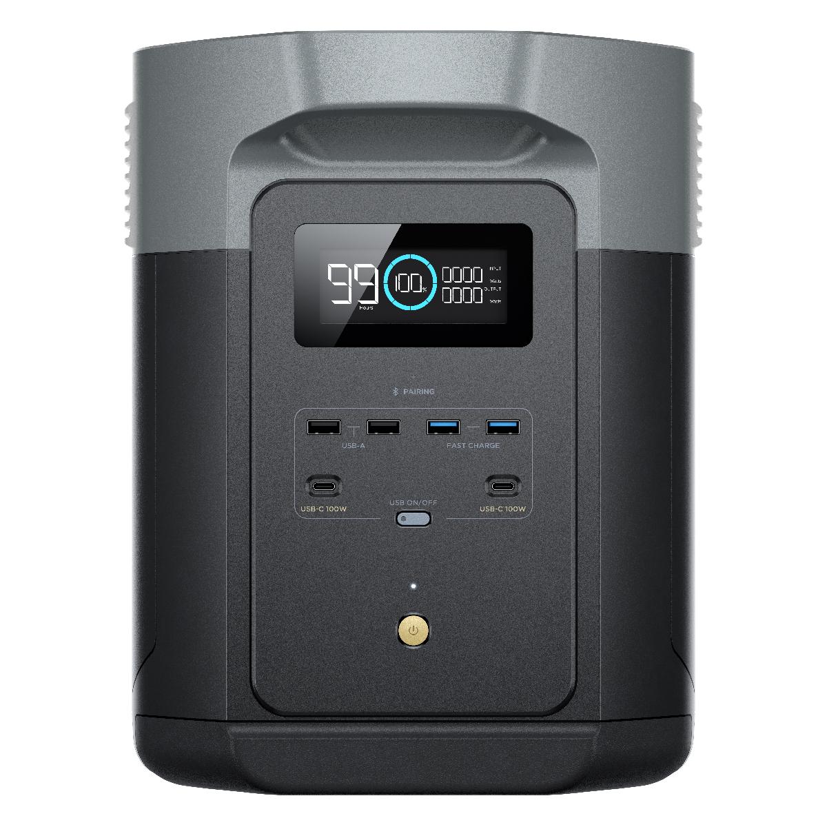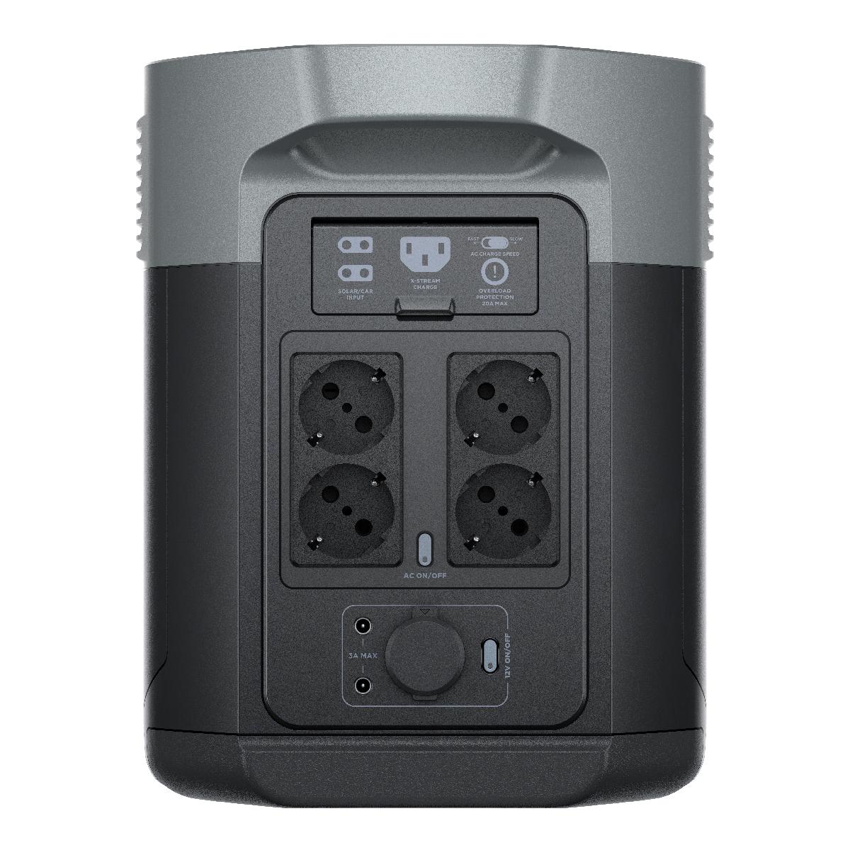 Портативная зарядная станция EcoFlow DELTA 2 Max выходной мощностью до 3000 Вт (в режиме X-Boost) для резервного и автономного питания дома, в автотрейлере, на кемпингах.