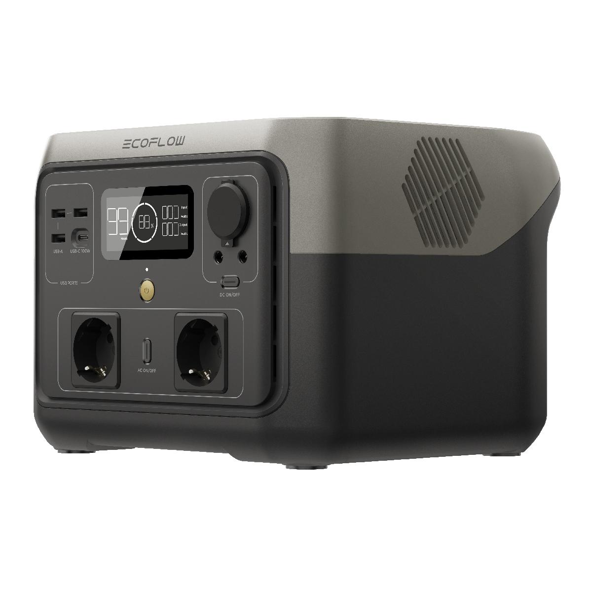 Портативная зарядная станция EcoFlow River 2 Max емкостью 512 Втч, выходной мощностью 500 Вт, с 9 выходными разъемами.