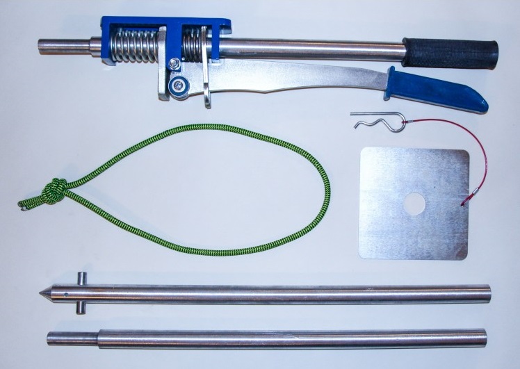 Разборный, полнотелый опорный шток диаметром 25 мм состоит из трех секций длиной 60 см., имеет общую рабочую длину 170 см. Шток изготовлен из прочного дюралевого сплава с большим сопротивлением на изгиб. Данный материал широко используется в авиастроении.